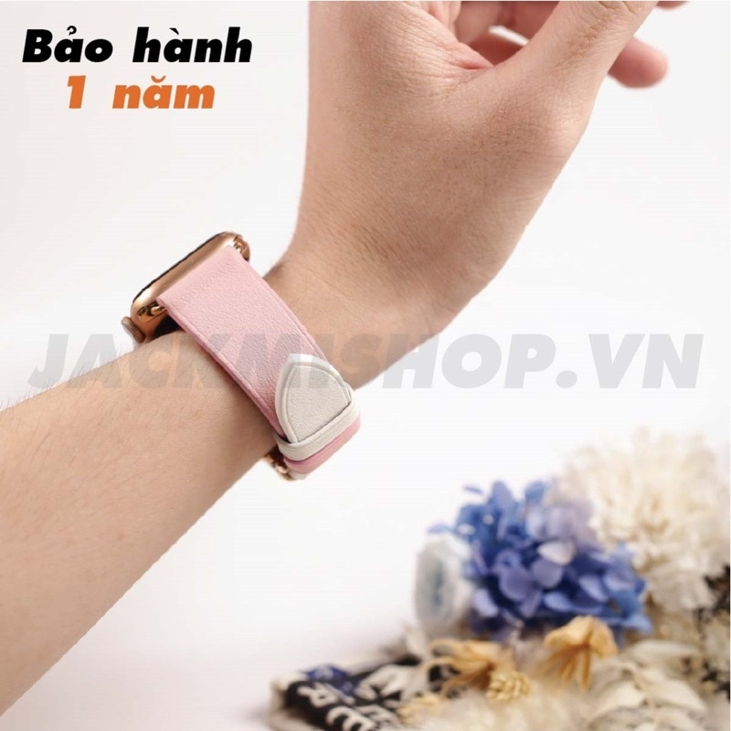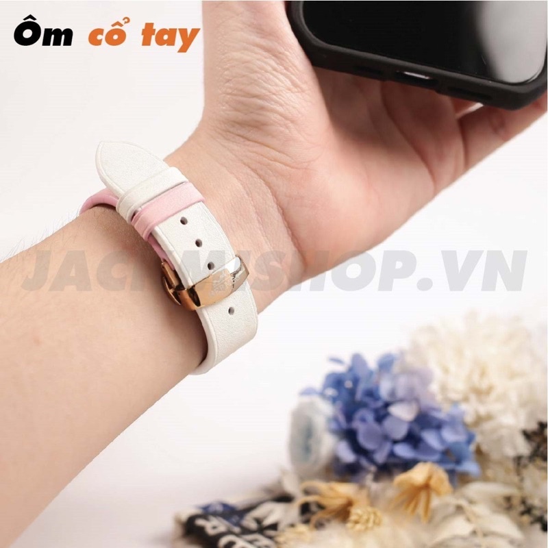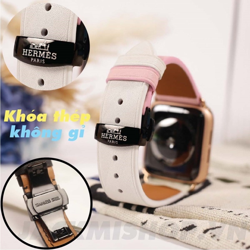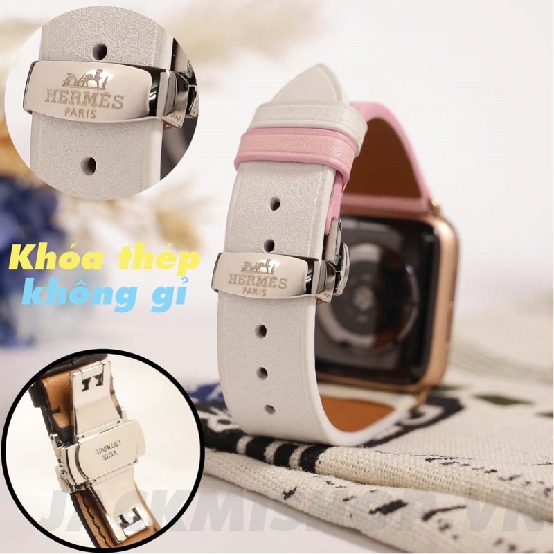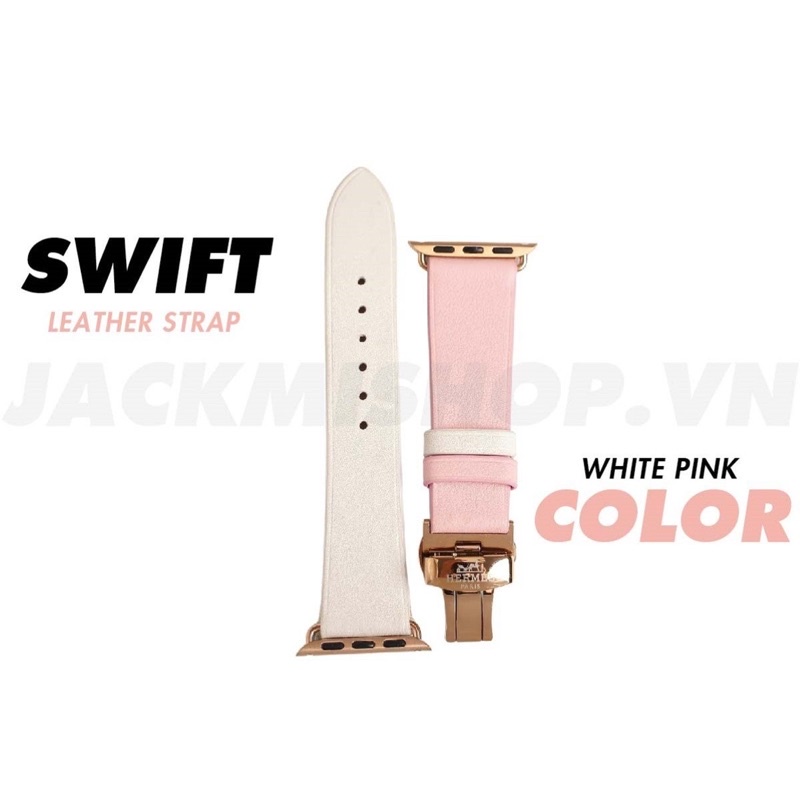 Giới thiệu [BẢO HẢNH 1 NĂM] Dây Da BÊ SWIFT may tay thủ công màu Hồng/Trắng khóa Bướm cho Apple Watch series 1/2/3/4/5/6/7