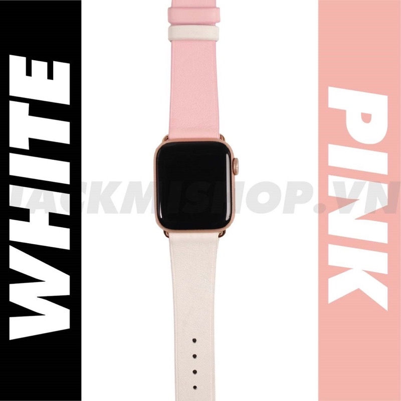 Điện Thoại & Phụ Kiện > Phụ kiện > Phụ kiện cho đồng hồ thông minh || [BẢO HẢNH 1 NĂM] Dây Da BÊ SWIFT may tay thủ công màu Hồng/Trắng khóa Bướm cho Apple Watch series 1/2/3/4/5/6/7Còn hàng