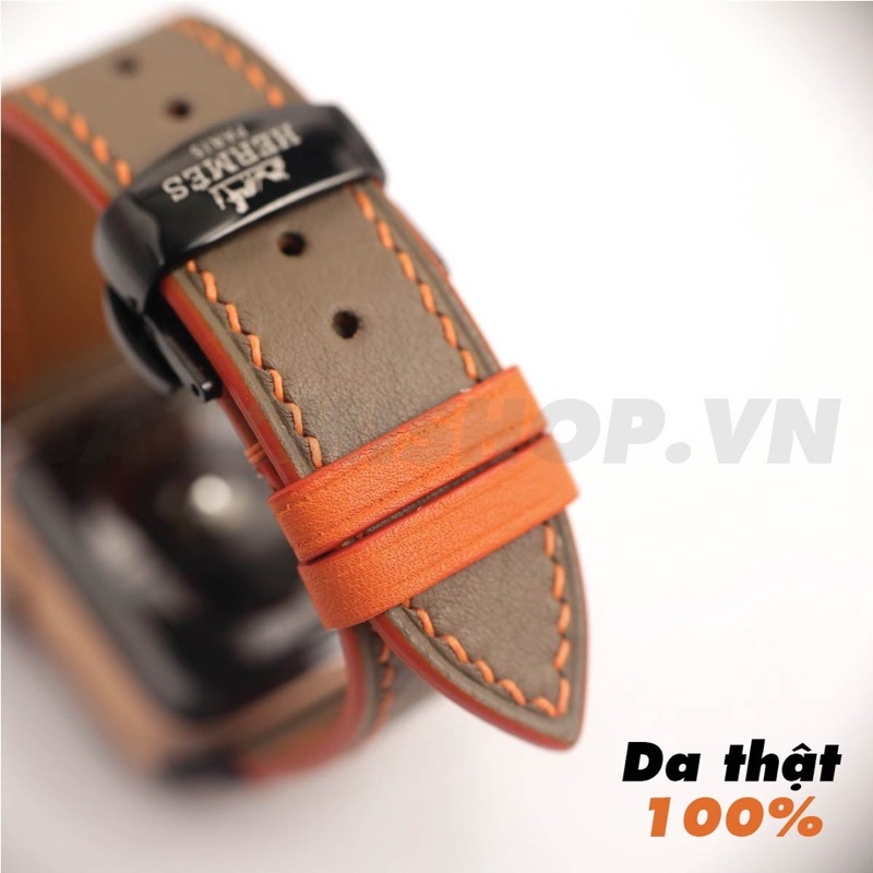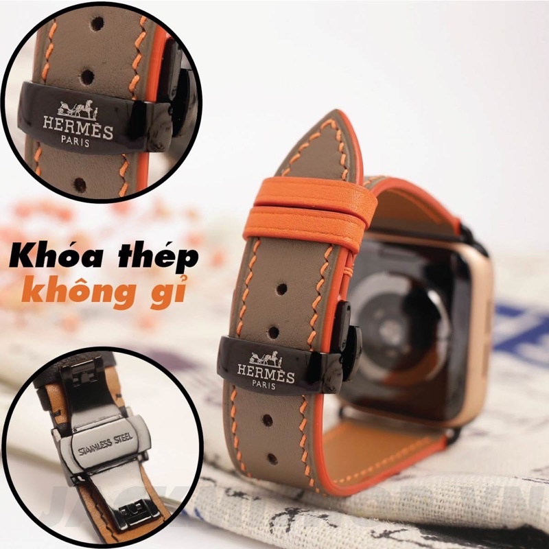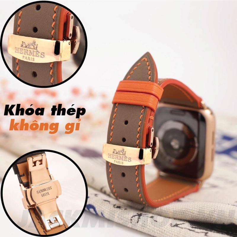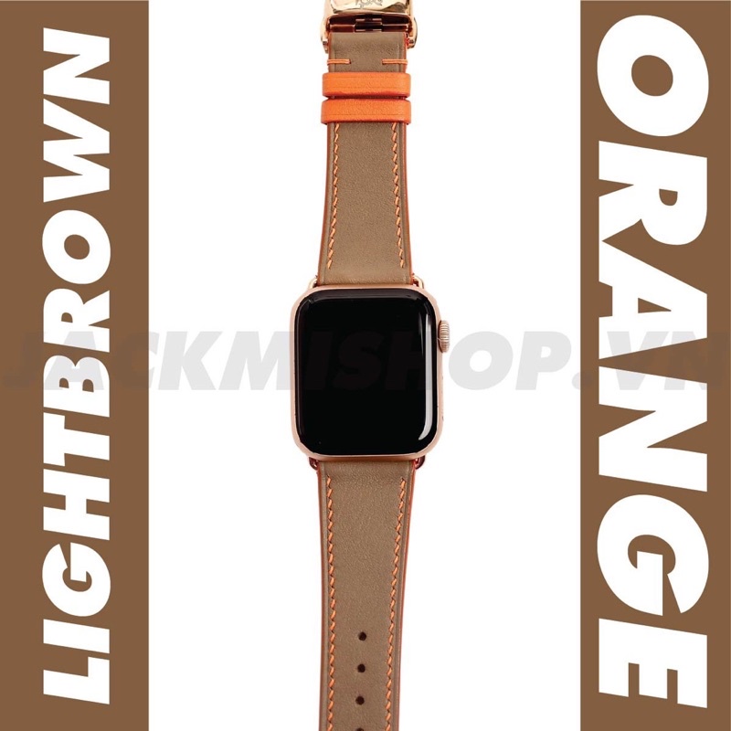 Giới thiệu [BẢO HÀNH 1 NĂM] Dây Da BÊ SWIFT may tay thủ công màu Nâu Tây chỉ Cam khóa Bướm cho Apple Watch series 1/2/3/4/5/6/7