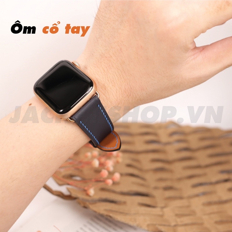 Giới thiệu [BẢO HÀNH 1 NĂM] Dây Da BÊ SWIFT may tay thủ công màu Xanh Đen chỉ Xanh khóa Bướm cho Apple Watch series 1/2/3/4/5/6/7