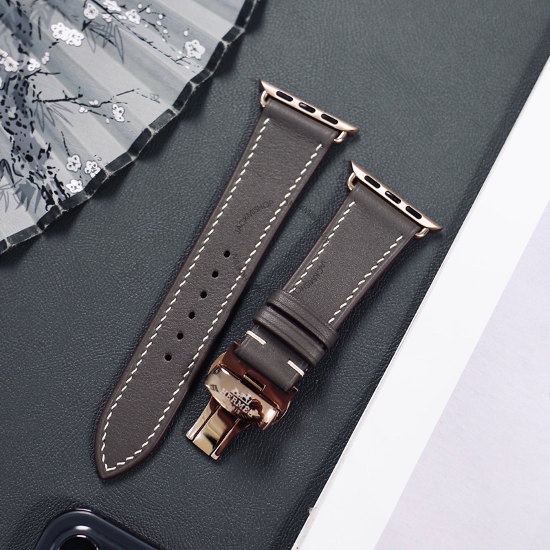 Giới thiệu [BẢO HÀNH 1 NĂM] Dây Da BÊ SWIFT may tay thủ công màu Xám khóa Bướm cho Apple Watch series 1/2/3/4/5/6/7