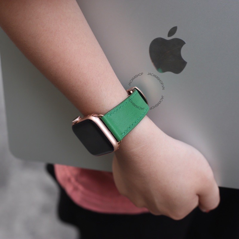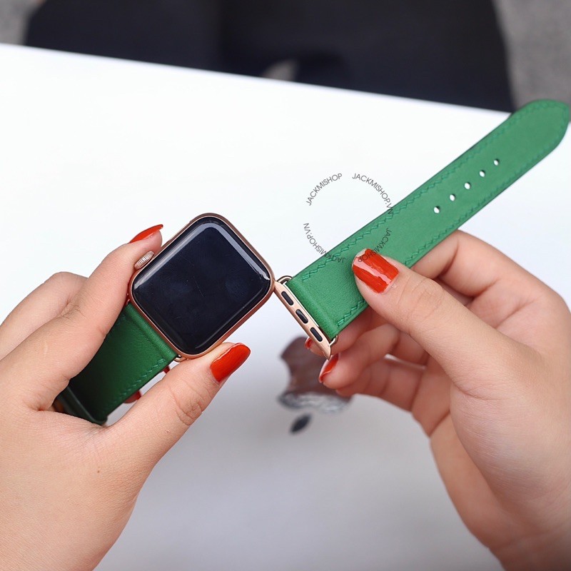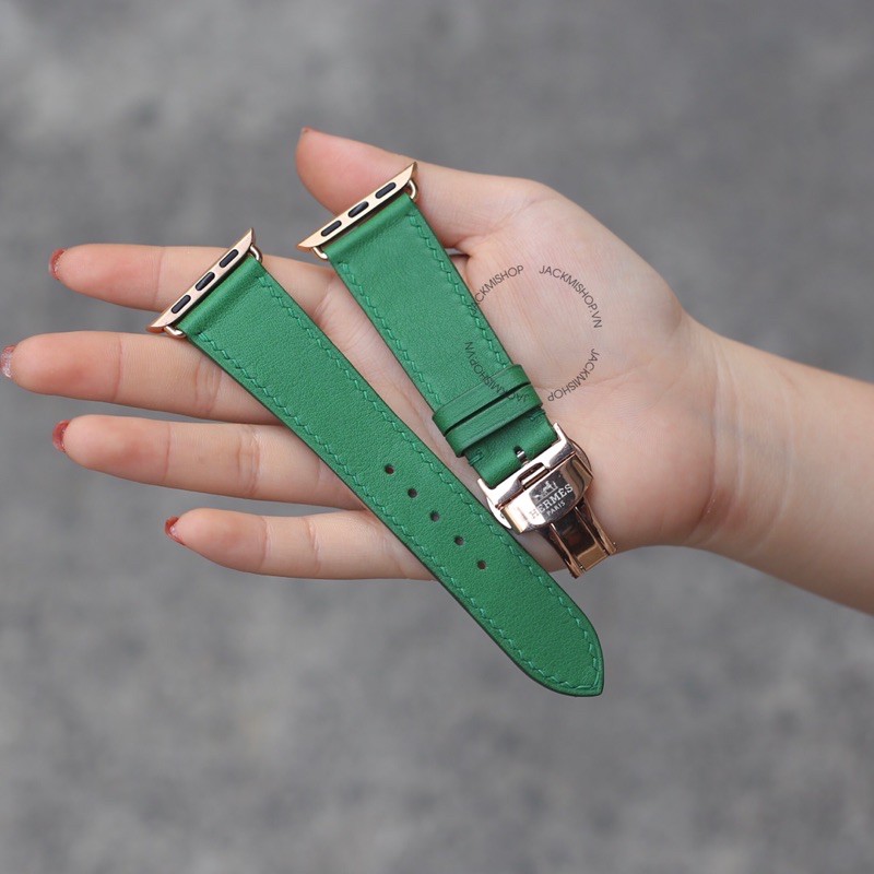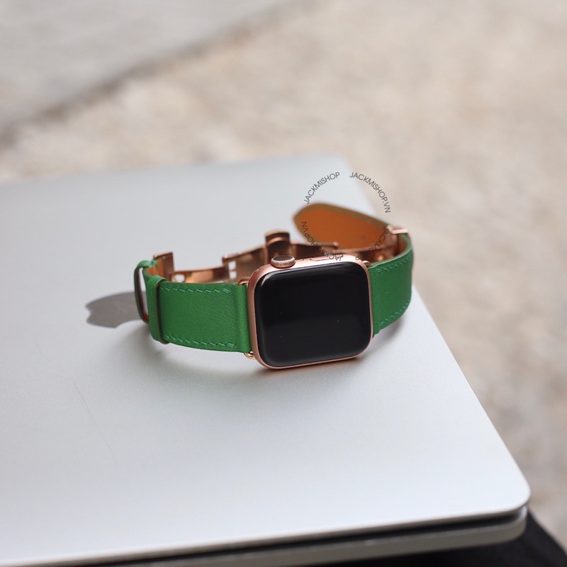 Giới thiệu [BẢO HÀNH 1 NĂM] Dây Da BÊ SWIFT may tay thủ công màu Xanh Lá khóa Bướm cho Apple Watch series 1/2/3/4/5/6/7