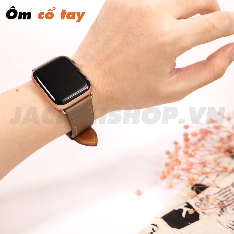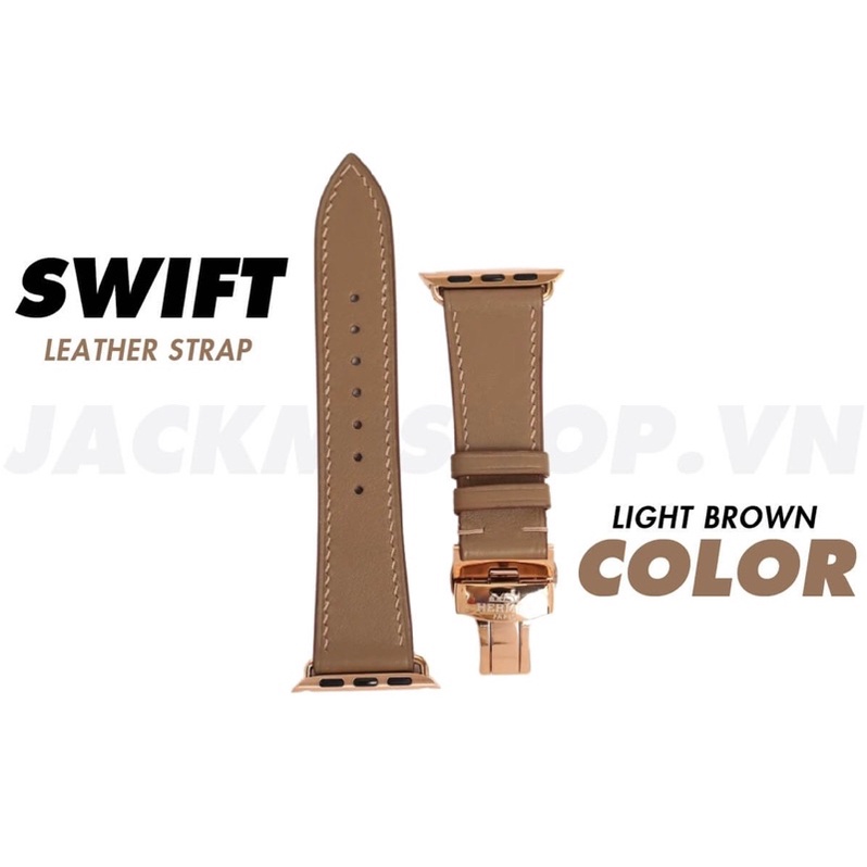 [BẢO HÀNH 1 NĂM] Dây Da BÊ SWIFT may tay thủ công màu Nâu Tây khoá Bướm cho Apple Watch series 1/2/3/4/5/6/7