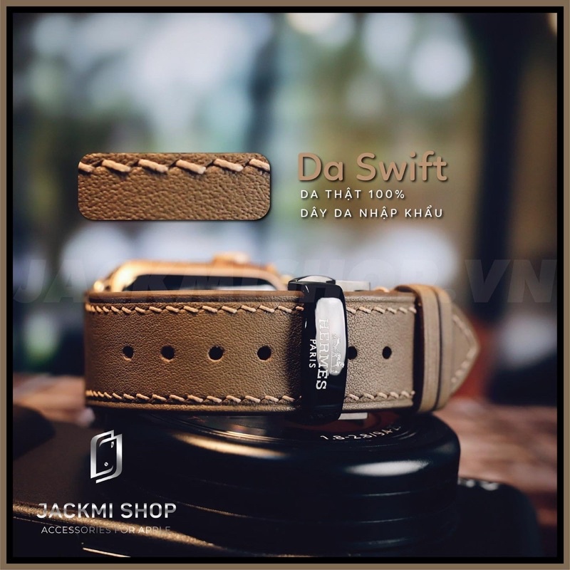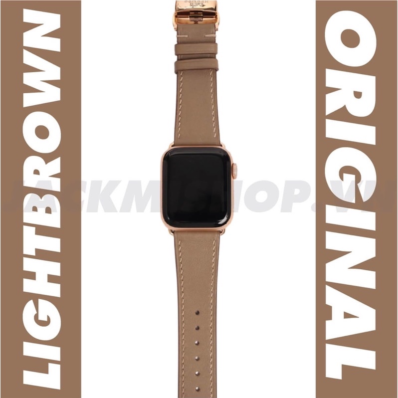 Giới thiệu [BẢO HÀNH 1 NĂM] Dây Da BÊ SWIFT may tay thủ công màu Nâu Tây khoá Bướm cho Apple Watch series 1/2/3/4/5/6/7