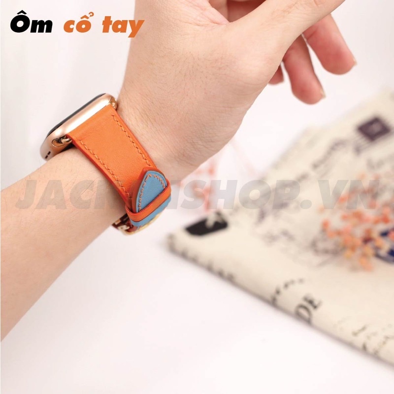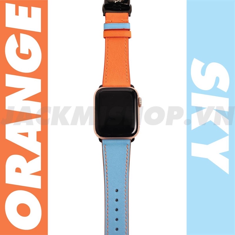 Giới thiệu [BẢO HÀNH 1 NĂM] Dây Da BÊ SWIFT may tay thủ công màu Cam/Xanh Da Trời khóa Bướm cho Apple Watch series 1/2/3/4/5/6/7