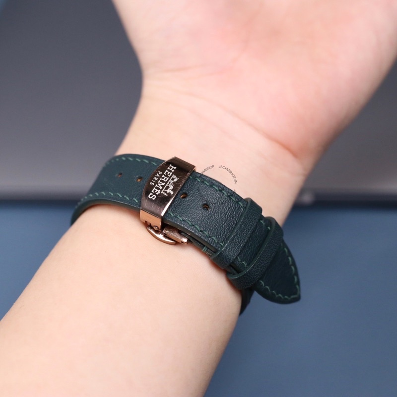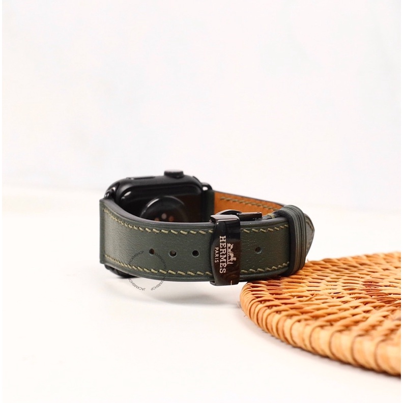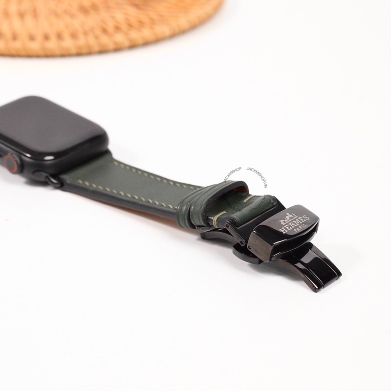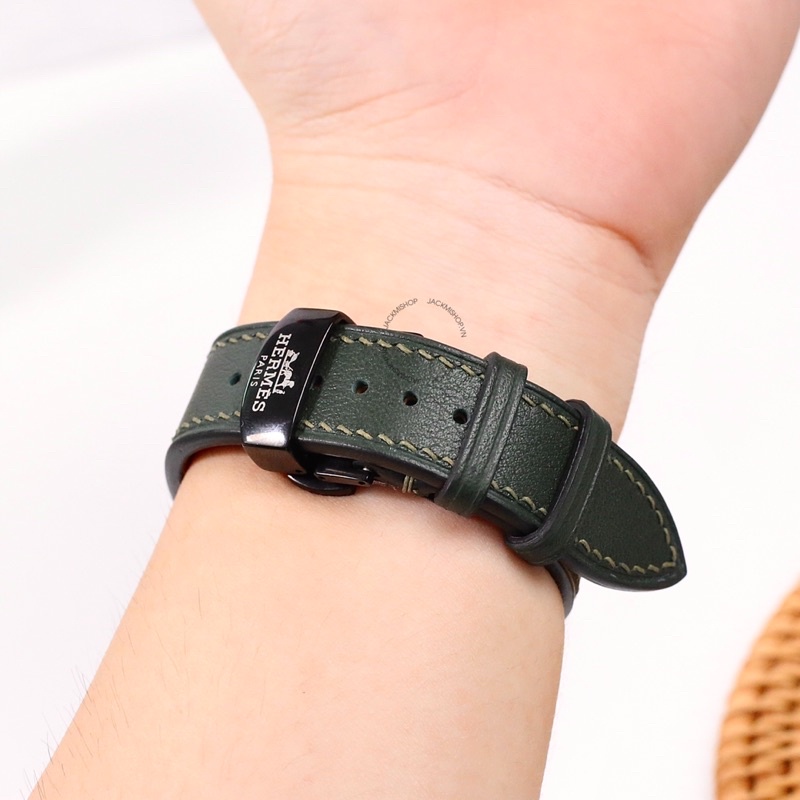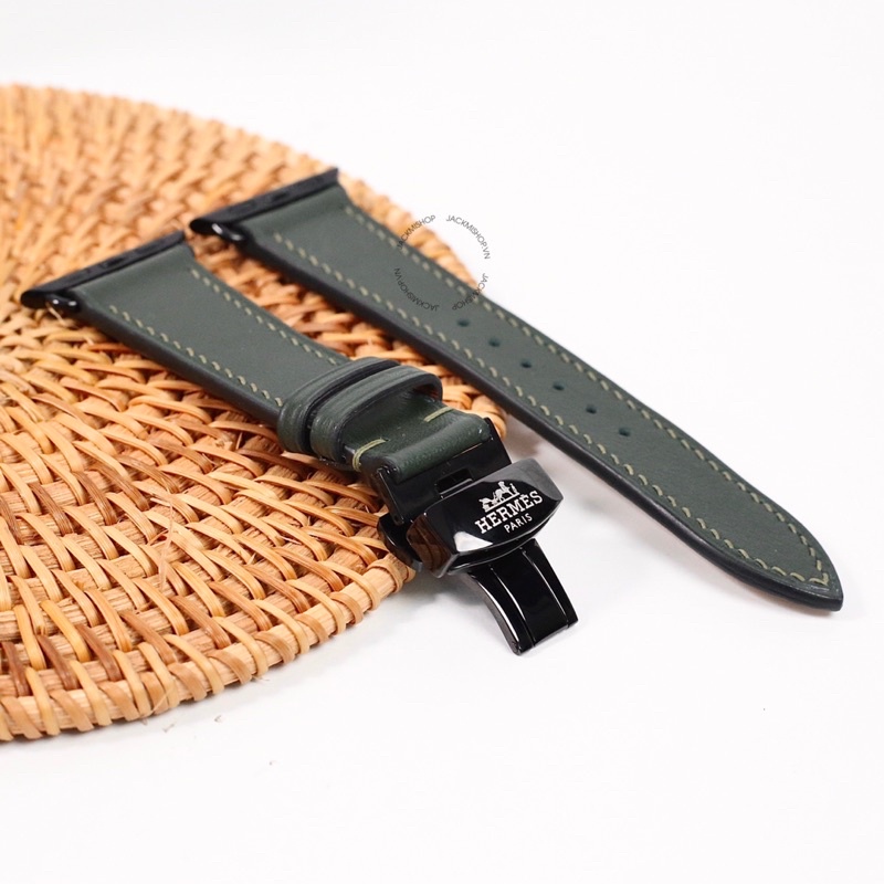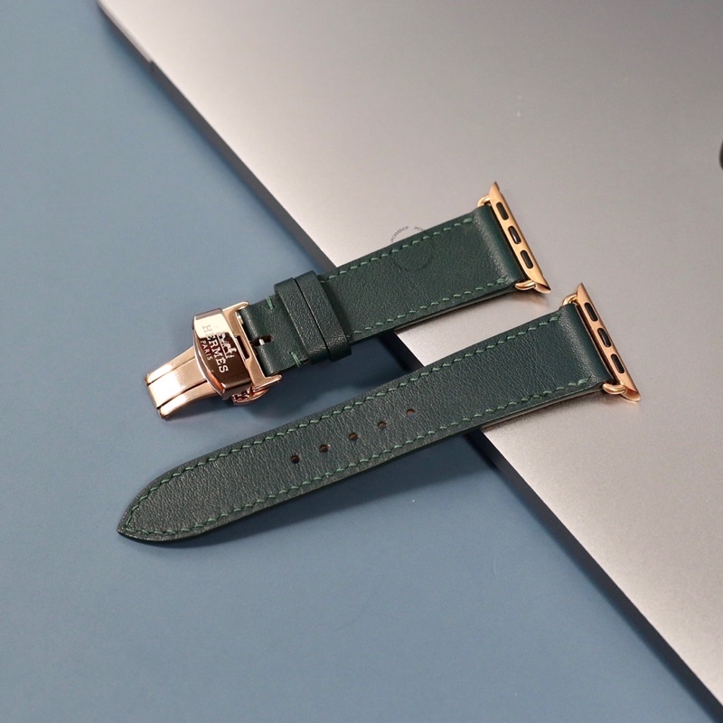 Giới thiệu [BẢO HÀNH 1 NĂM] Dây Da BÊ SWIFT may tay thủ công màu Xanh Tảo khóa Bướm cho Apple Watch series 1/2/3/4/5/6/7