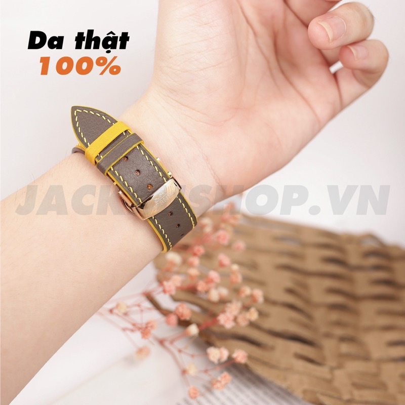 Điện Thoại & Phụ Kiện > Phụ kiện > Phụ kiện cho đồng hồ thông minh || [BẢO HÀNH 1 NĂM] Dây Da BÊ SWIFT may tay thủ công màu Vàng/Nâu Tây khóa Bướm cho Apple Watch series 1/2/3/4/5/6/7Còn hàng