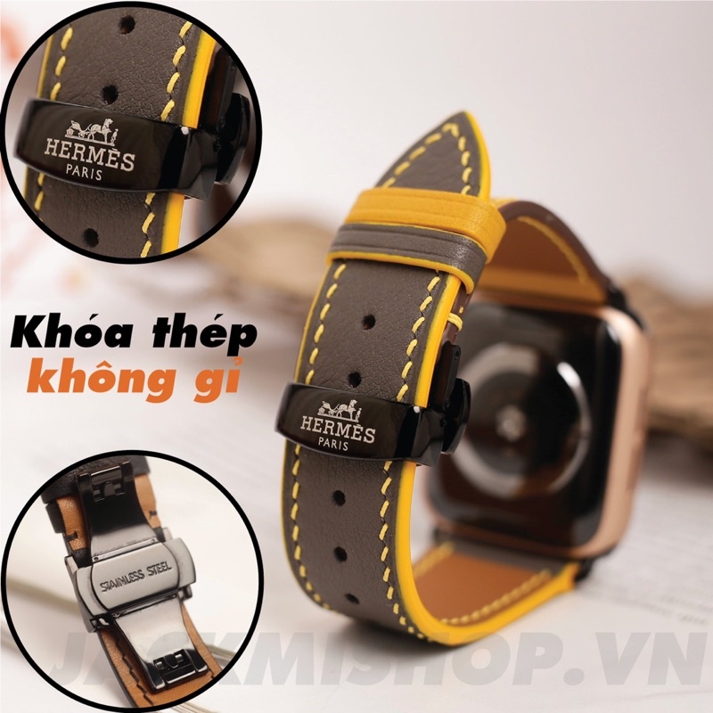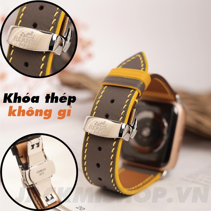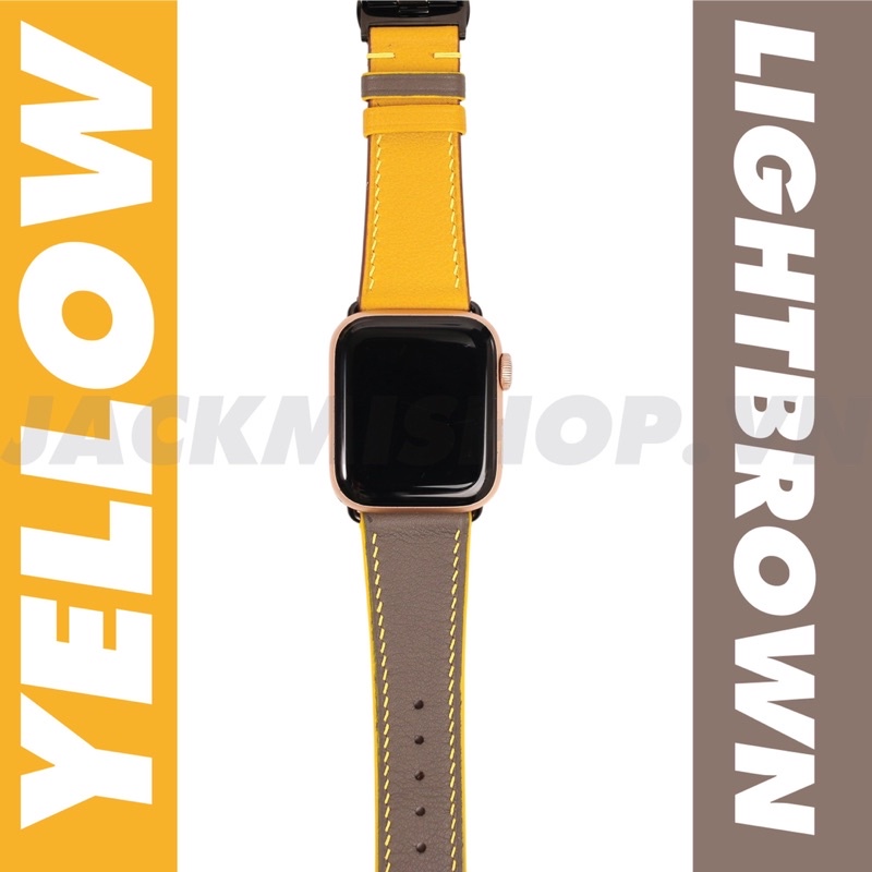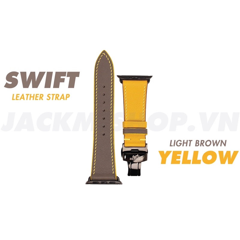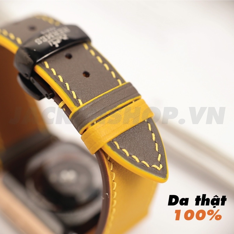 Giới thiệu [BẢO HÀNH 1 NĂM] Dây Da BÊ SWIFT may tay thủ công màu Vàng/Nâu Tây khóa Bướm cho Apple Watch series 1/2/3/4/5/6/7