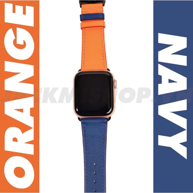 Điện Thoại & Phụ Kiện > Phụ kiện > Phụ kiện cho đồng hồ thông minh || [BẢO HÀNH 1 NĂM] Dây Da BÊ SWIFT may tay thủ công màu Cam/Xanh Navy khóa Bướm cho Apple Watch series 1/2/3/4/5/6/7Còn hàng