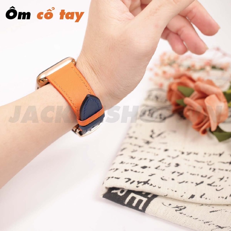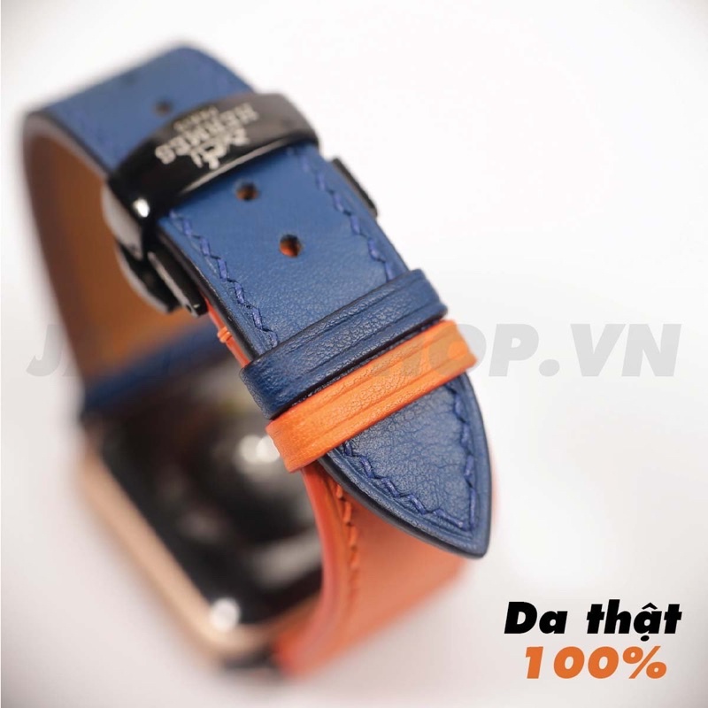 Giới thiệu [BẢO HÀNH 1 NĂM] Dây Da BÊ SWIFT may tay thủ công màu Cam/Xanh Navy khóa Bướm cho Apple Watch series 1/2/3/4/5/6/7