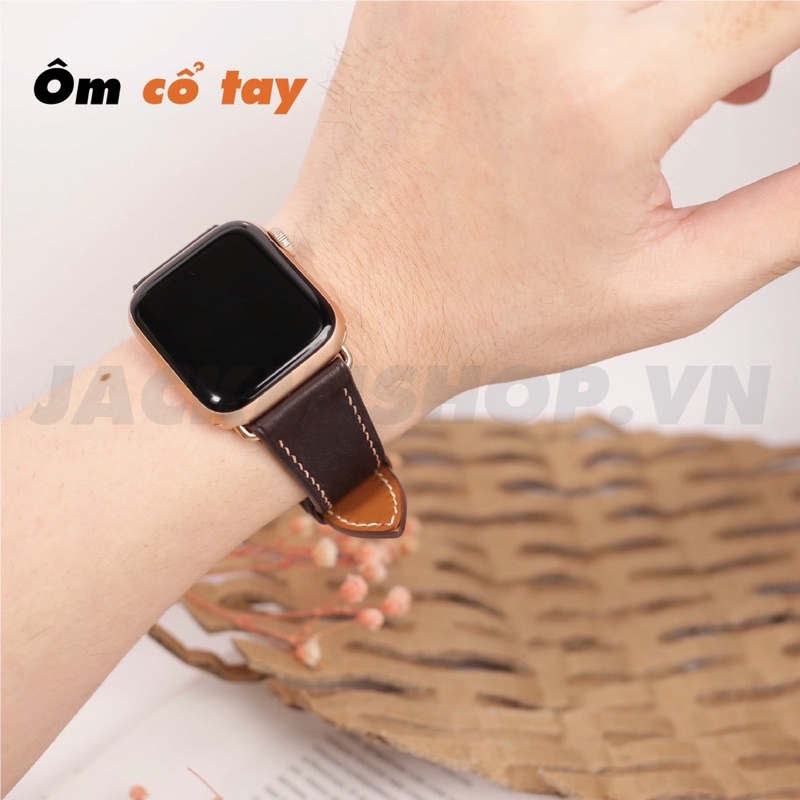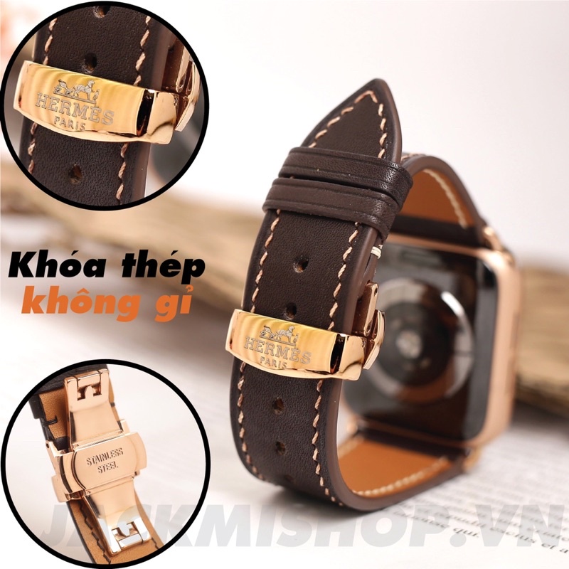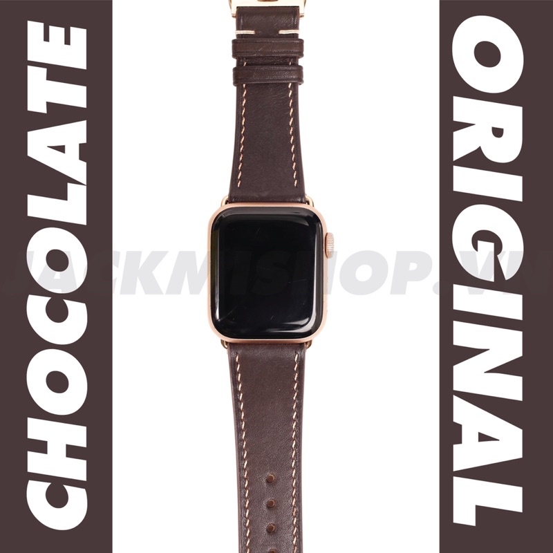 Giới thiệu [BẢO HÀNH 1 NĂM] Dây Da BÊ SWIFT may tay thủ công màu Nâu Choco khóa Bướm cho Apple Watch series 1/2/3/4/5/6/7