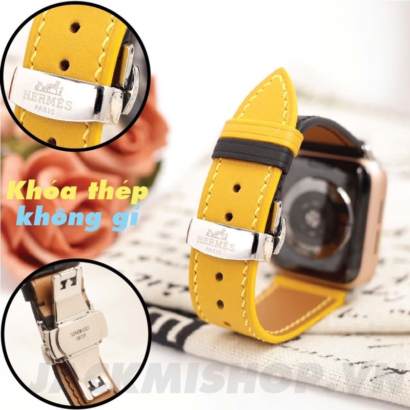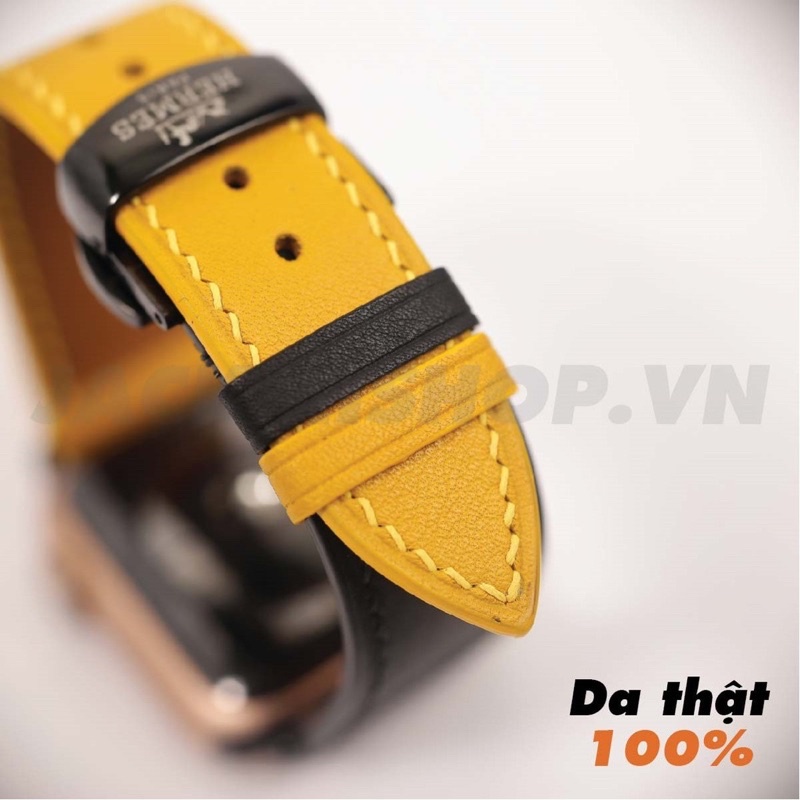 [BẢO HÀNH 1 NĂM] Dây Da BÊ SWIFT may tay thủ công màu Đen/Vàng khóa bướm cho Apple Watch series 1/2/3/4/5/6/7