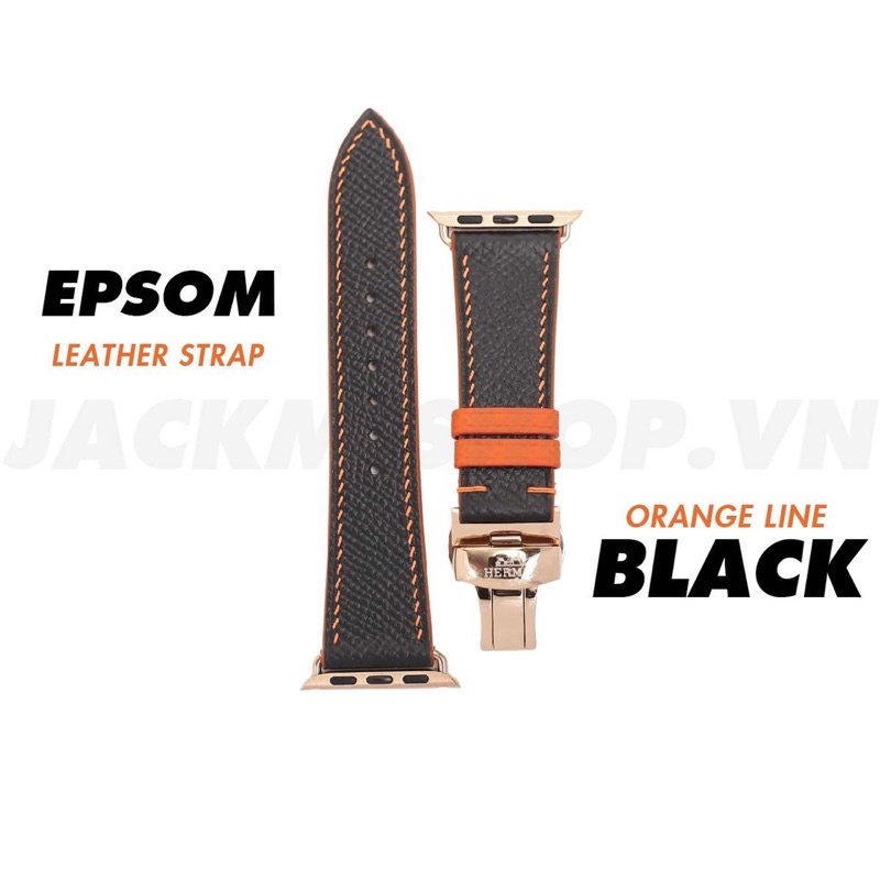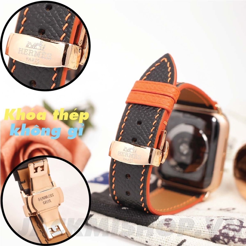 Giới thiệu [BẢO HÀNH 1 NĂM] Dây Da EPSOM may tay thủ công màu Cam/Trắng khóa Bướm cho Apple Watch series 1/2/3/4/5/6/7