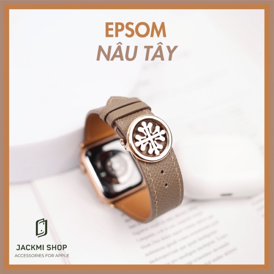 Giới thiệu [BẢO HÀNH 1 NĂM] Dây Da EPSOM Nâu Tây Khoá Patek cho Apple Watch series 7/6/5/4/3/2/1