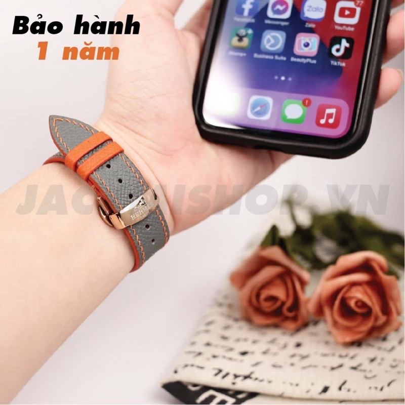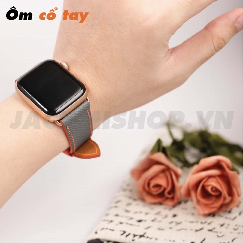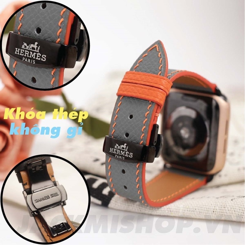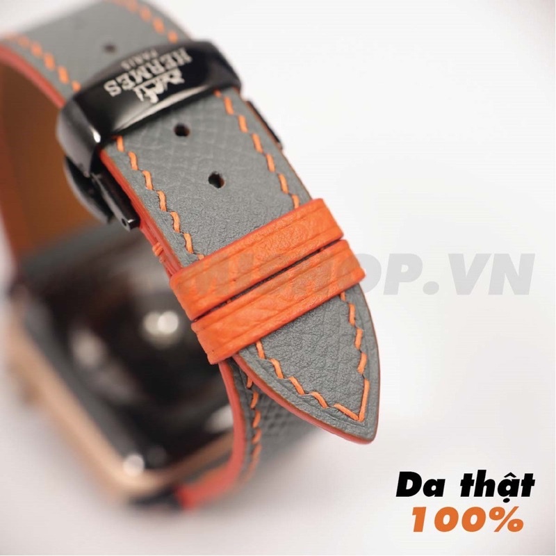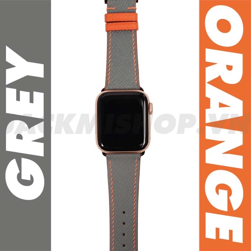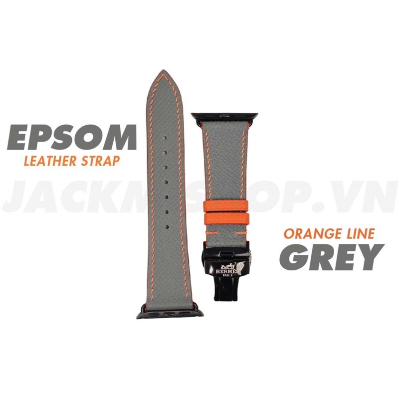 Giới thiệu [BẢO HÀNH 1 NĂM] Dây Da EPSOM may tay thủ công màu Xám chỉ Cam khóa Bướm cho Apple Watch series 1/2/3/4/5/6/7