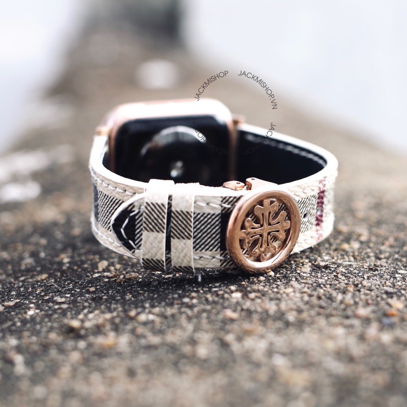 Giới thiệu [BẢO HÀNH 1 NĂM] Dây Da SIMILI Burberry Khóa Patek cho Apple Watch series 7/6/5/4/3/2/1