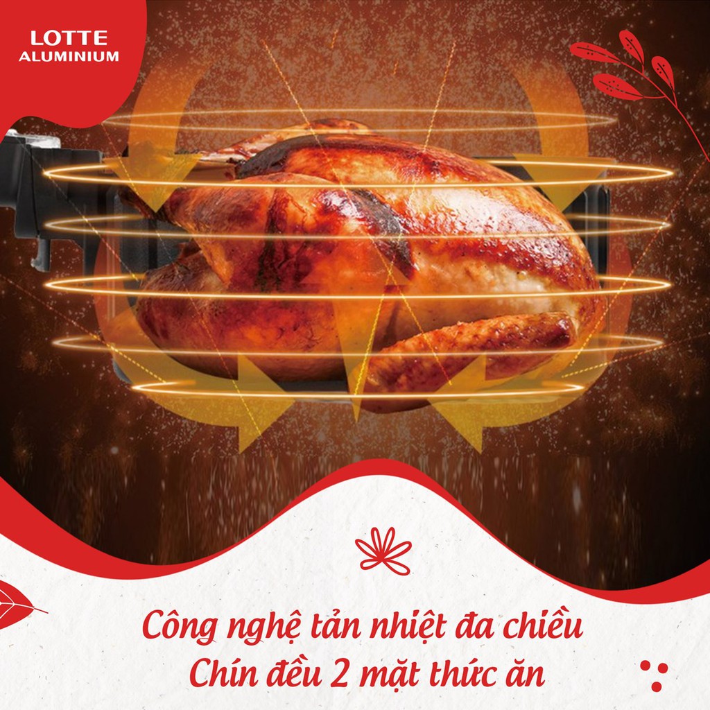 - Công nghệ chiên không dầu Lotte cho phép bạn chiên rán, nướng và quay thực phẩm nhanh chóng mà không cần hoặc dùng rất ít dầu ăn. Bởi vậy bạn có thể thoải mái ăn các món chiên rán mà vẫn giữ được vóc dáng và không ảnh hướng đến sức khỏe.