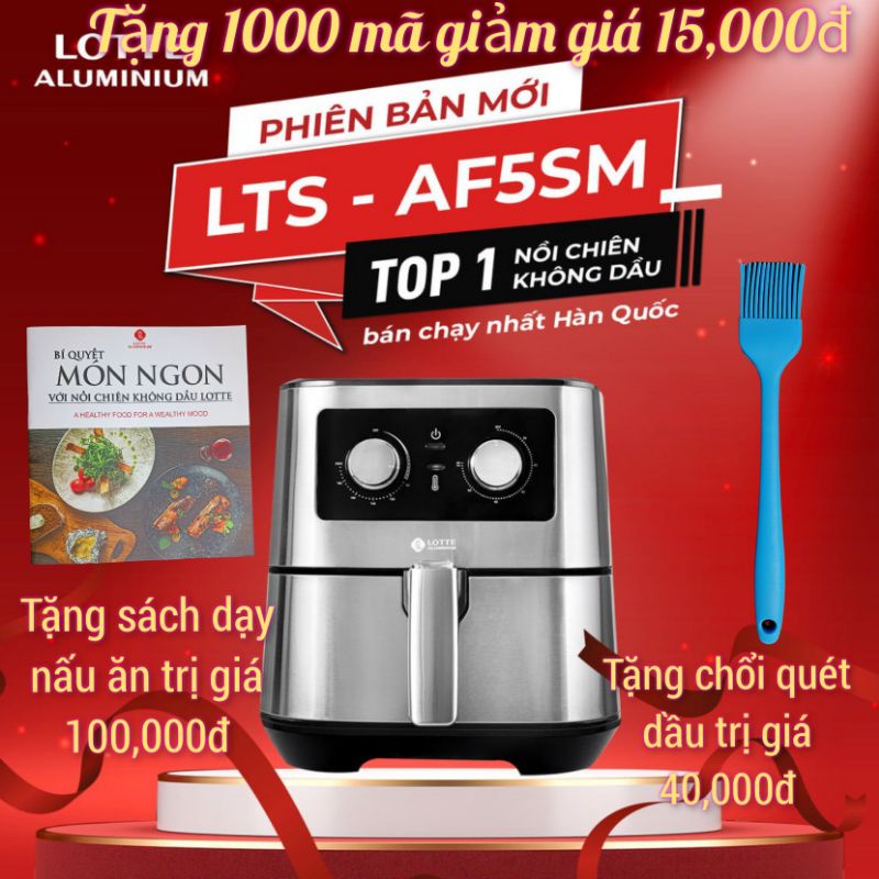 [BẢO HÀNH 1 NĂM] Nồi chiên không dầu Lotte 5,5 lít model LTS - AF5SM NHẬP KHẨU NGUYÊN CHIẾC Mẫu mới tặng kèm sách nấu ăn