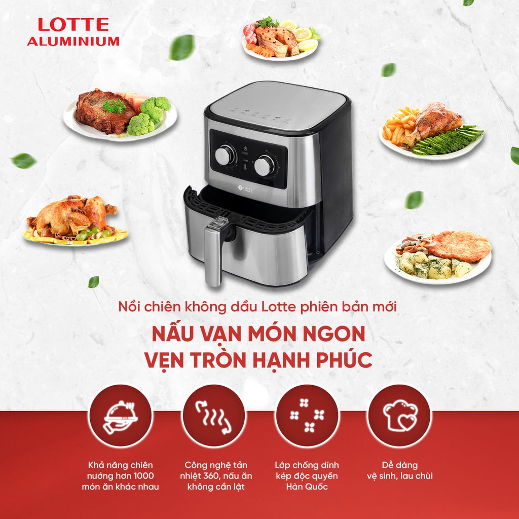 Giới thiệu [BẢO HÀNH 1 NĂM] Nồi chiên không dầu Lotte 5,5 lít model LTS - AF5SM NHẬP KHẨU NGUYÊN CHIẾC Mẫu mới tặng kèm sách nấu ăn