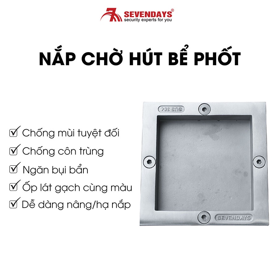 Giới thiệu [BẢO HÀNH 10 NĂM] Nắp Chờ Hút Bể Phốt Sevendays Mặt Vuông Size 12 mã SE-126