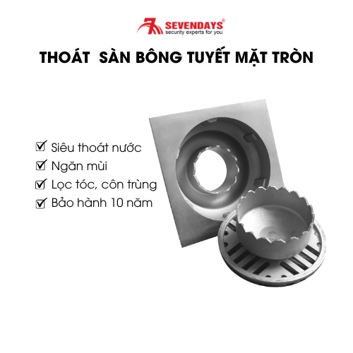 Giới thiệu [BẢO HÀNH 10 NĂM] Phễu Thoát Sàn Chống Mùi, Ngăn Côn Trùng SEVENDAYS Bông Tuyết Mặt Tròn Inox Cao Cấp Mã SAT-12UXL-X