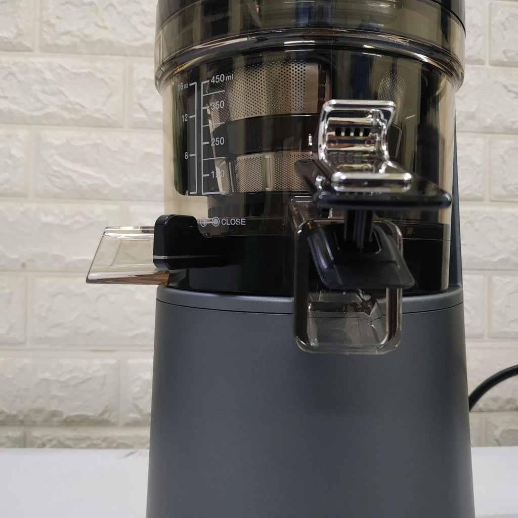 Dung Tích Khoang chứa alpha 500ml có cửa xả mở và cần gạt bã để tăng hiệu quả khi ép