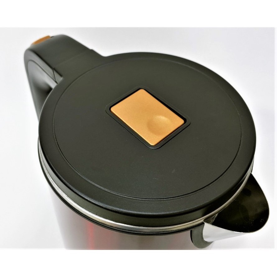 - Ấm thiết kế theo phong cách hiện đại với nút bật nắp được thiết kế màu nổi bật nằm giữa ấm, chỉ cần nhấn nút là nắp tự bật lên