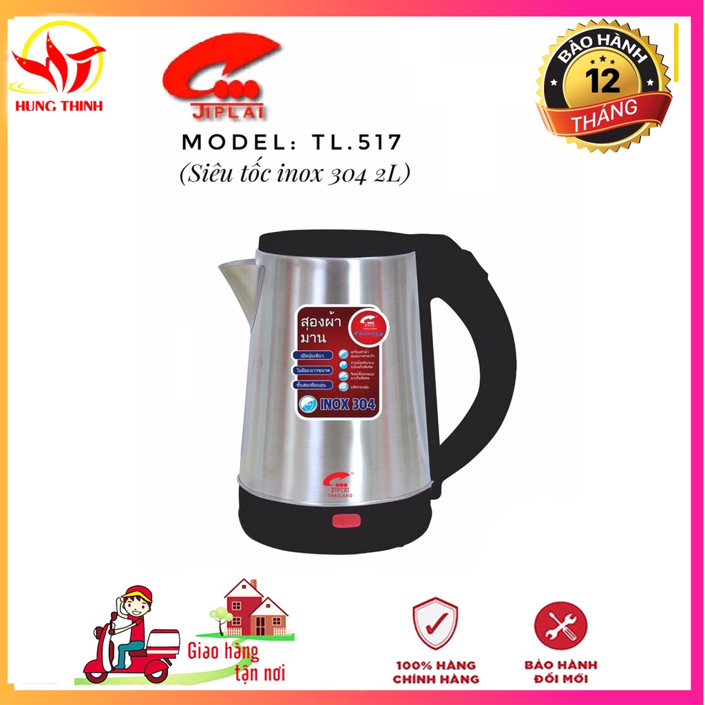 Giới thiệu Bảo Hành 12 Tháng Ấm siêu tốc inox 304 JIPLAI TL517 Thailand 2 lít