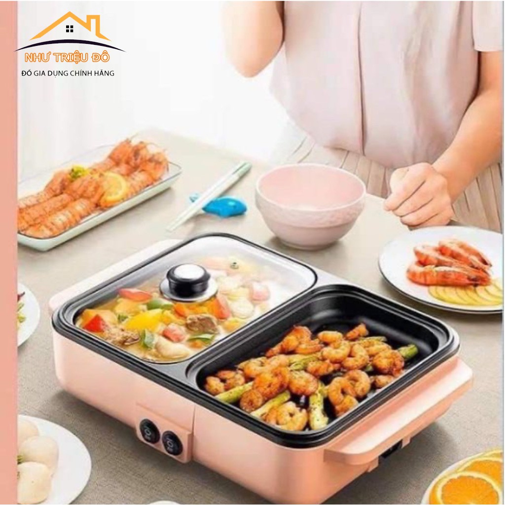 BẢO HÀNH 12 THÁNG Bếp lẩu nướng 2 ngăn Đa năng mini, điều chỉnh nhiệt độ, chống dính cao cấp SIÊU HOT