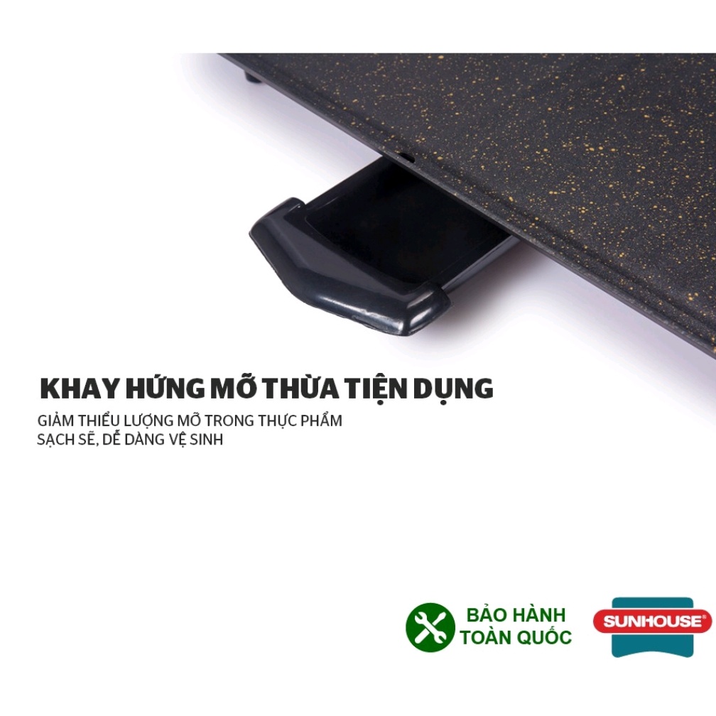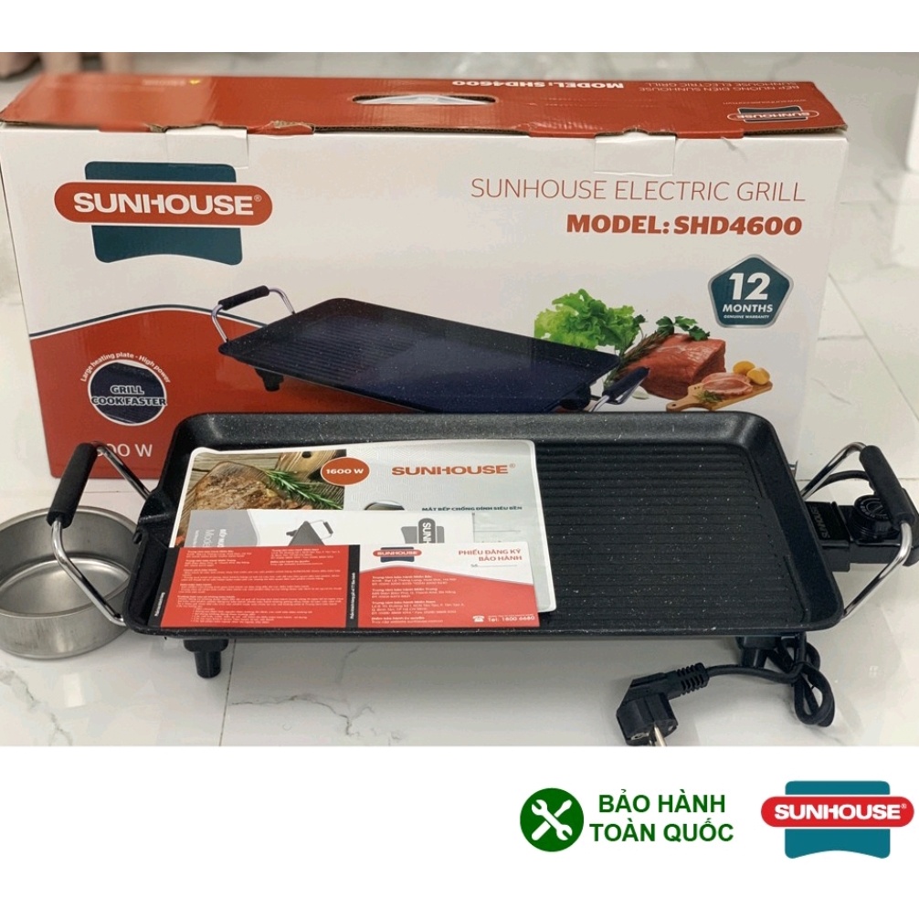 - Bếp nướng điện SUNHOUSE SHD4600 là sản phẩm bếp nướng hiện đại, tiện dụng sử dụng điện năng để nấu thực phẩm, bề mặt bếp được phủ lớp chống dính đá hoa cương truyền nhiệt nhanh hơn, giữ nhiệt lâu hơn. Bếp nhiều chức năng như: nướng, chiên, xào, rán bạn có thể thảo sức để sáng tạo món ăn. Hoạt động với công suất 1600W nướng thực phẩm nhanh hơn, thiết kế hình chữ nhật có thể nấu được nhiều thức ăn hơn.