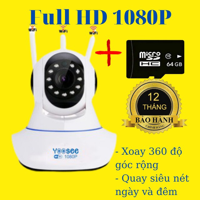 Cameras & Flycam > Camera giám sát > Camera giám sát kết nối internet || [ Bảo Hành 12 Tháng ] Camera Giám Sát Yoosee 3 Râu 2.0 Freeship Full HD 1080P Siêu Nét Quay 360 Độ Góc RộngCòn hàng