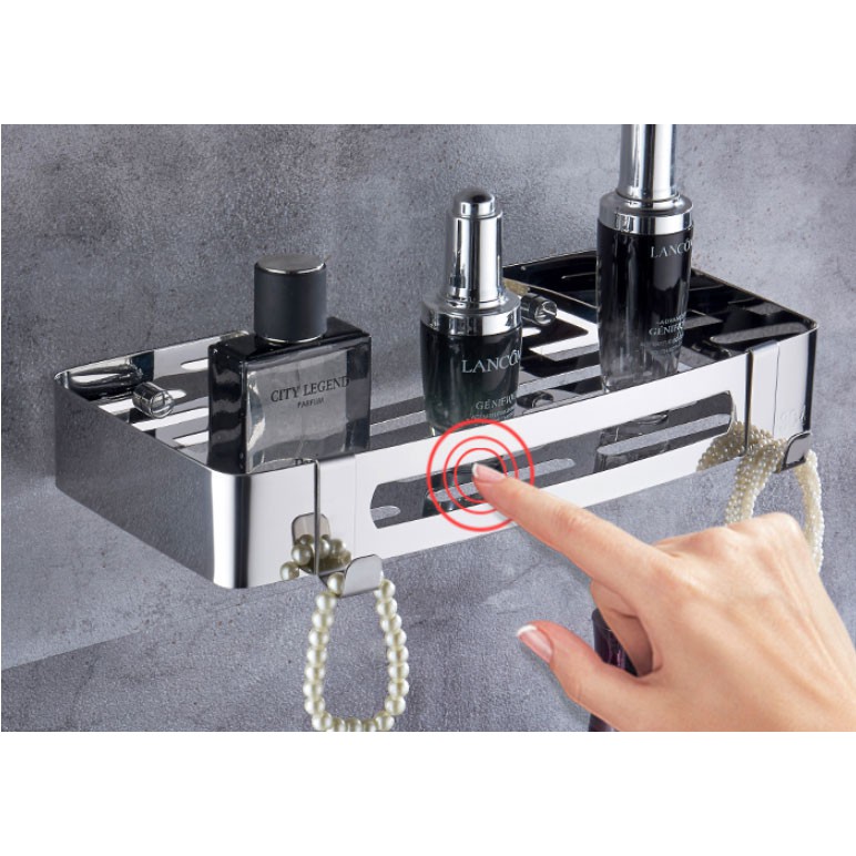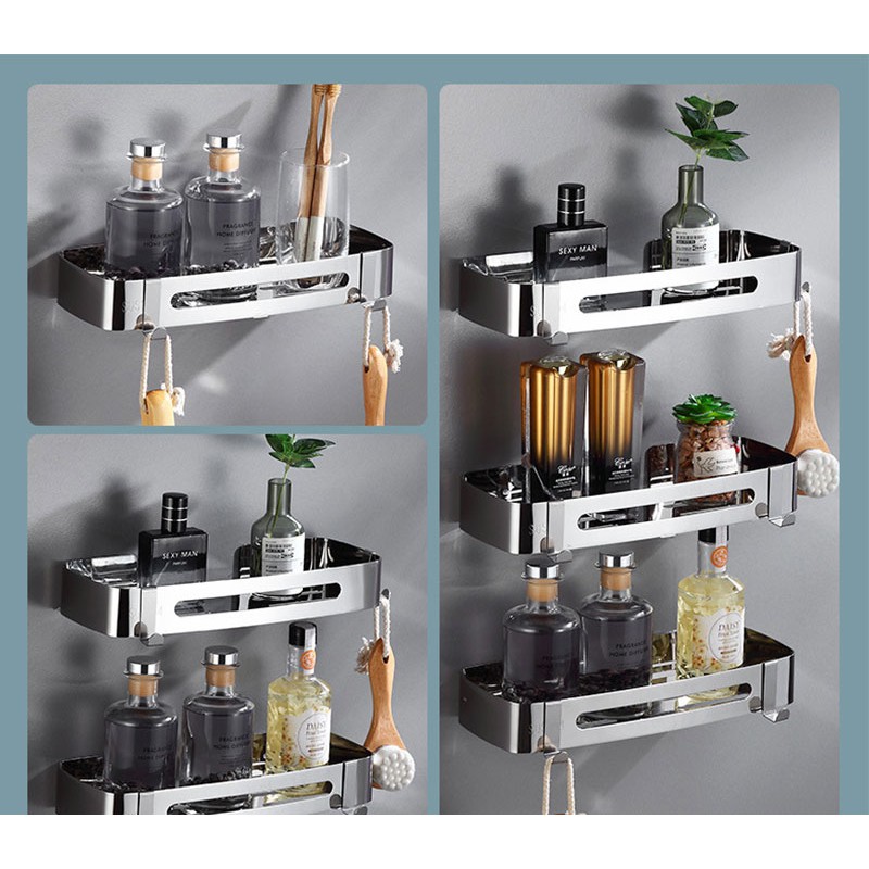 Nhà Cửa & Đời Sống > Đồ dùng phòng tắm > Kệ để đồ phòng tắm || [BẢO HÀNH 12 THÁNG] Kệ- Giá inox cao cấp phòng tắm hình chữ nhật chống han gỉ, dán siêu chắc VKIT, Kèm móc treo NT14Còn hàng