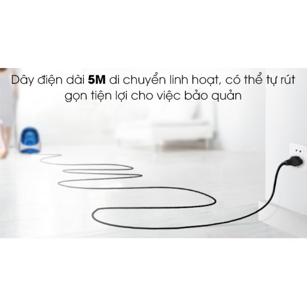 - Chiều dài dây nguồn 5 mét, giúp hút bụi ở mọi ngóc ngách và các vị trí xa nguồn điện.