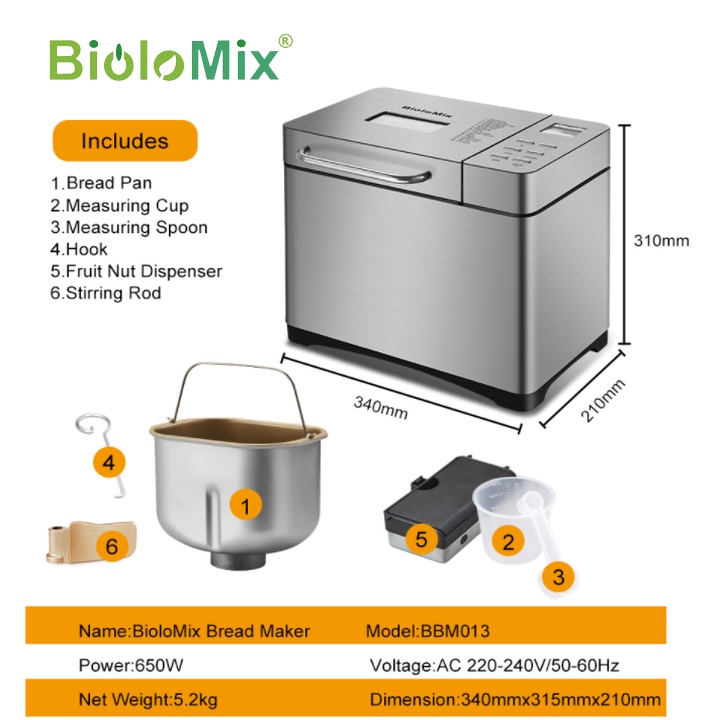 [ BẢO HÀNH 12 THÁNG] Máy làm bánh mỳ tự động đa năng cao cấp BioloMix công suất 650W BBM013