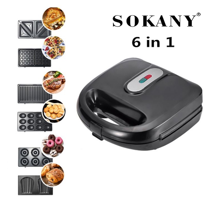 Giới thiệu [Bảo hành 12 tháng] Máy nướng bánh mỳ sandwich sokany 6 trong 1 (Hàng cao cấp) - Kẹp nướng bánh mì