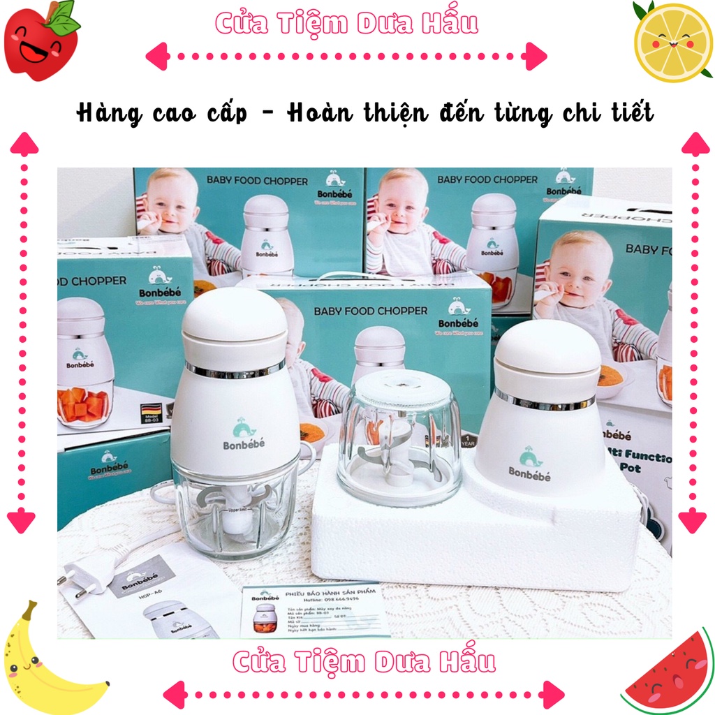 Giới thiệu (Bảo Hành 12 Tháng) Máy Xay Ăn Dặm 1 Cối Thủy Tinh Bonbebe 300ml, Máy Xay Mini Màu Trắng- Cửa Tiệm Dưa Hấu