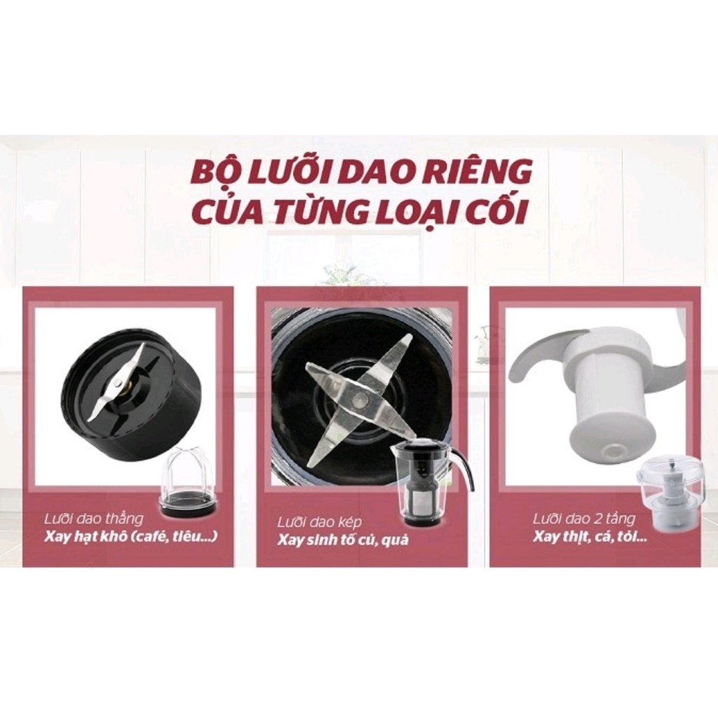 Chức năng Xay hoa quả, sinh tố + xay thịt, cá, tôm + xay thực phẩm khô