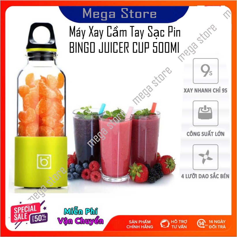 💥 Máy Xay Sinh Tố Cầm Tay Mini Sạc Pin 4 Lưỡi BINGO JUICER CUP 500Ml, Siêu Tiện Dụng Cho Mùa Hè 2021==================================