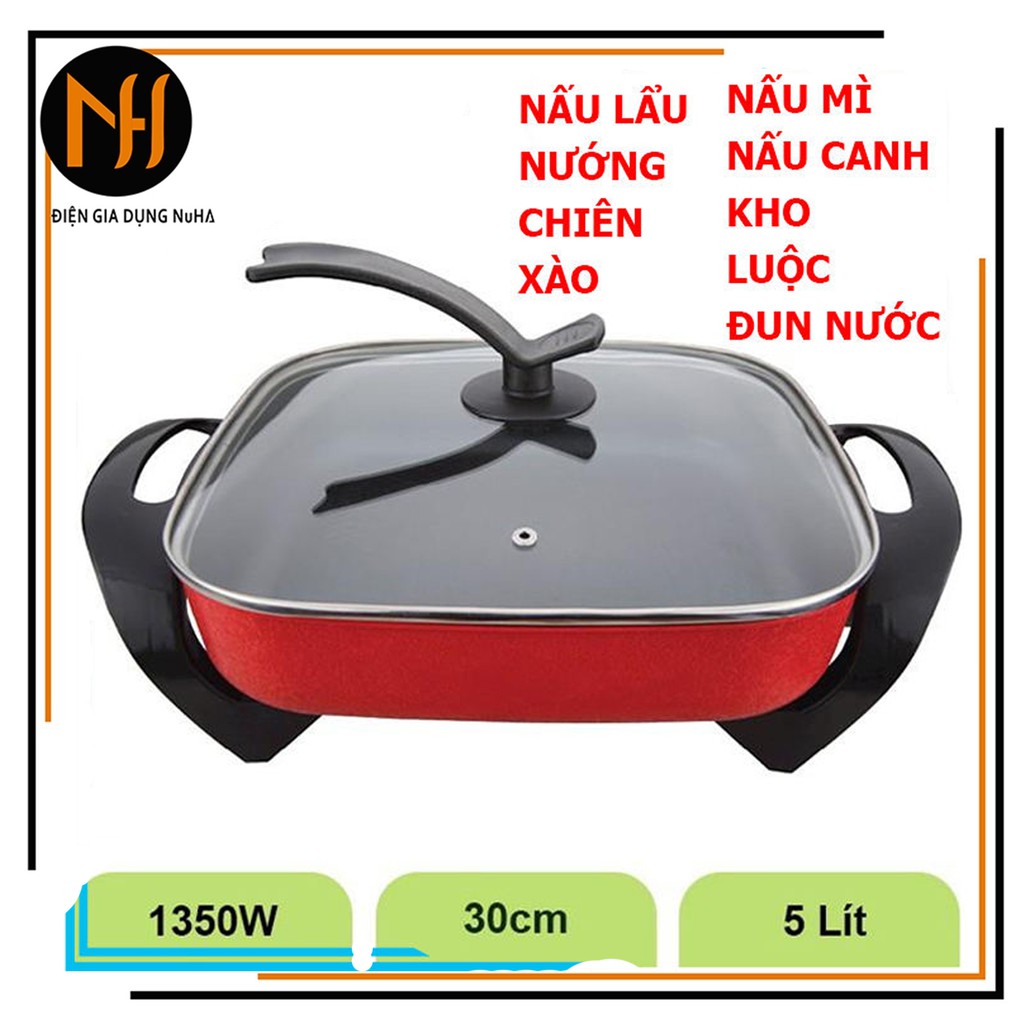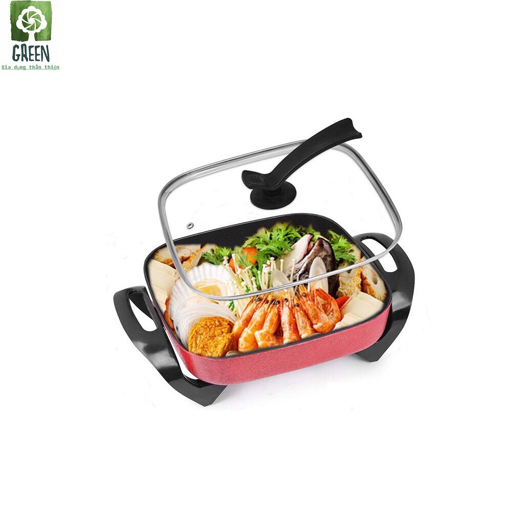 Giới thiệu [Bảo hành 12 tháng]Nồi lẩu điện vuông chống dính GreenCook GCEH30 dung tích 5L, công suất 1350W