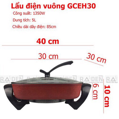 - Tên sản phẩm: Nồi lẩu điện vuông GreenCook GCEH30