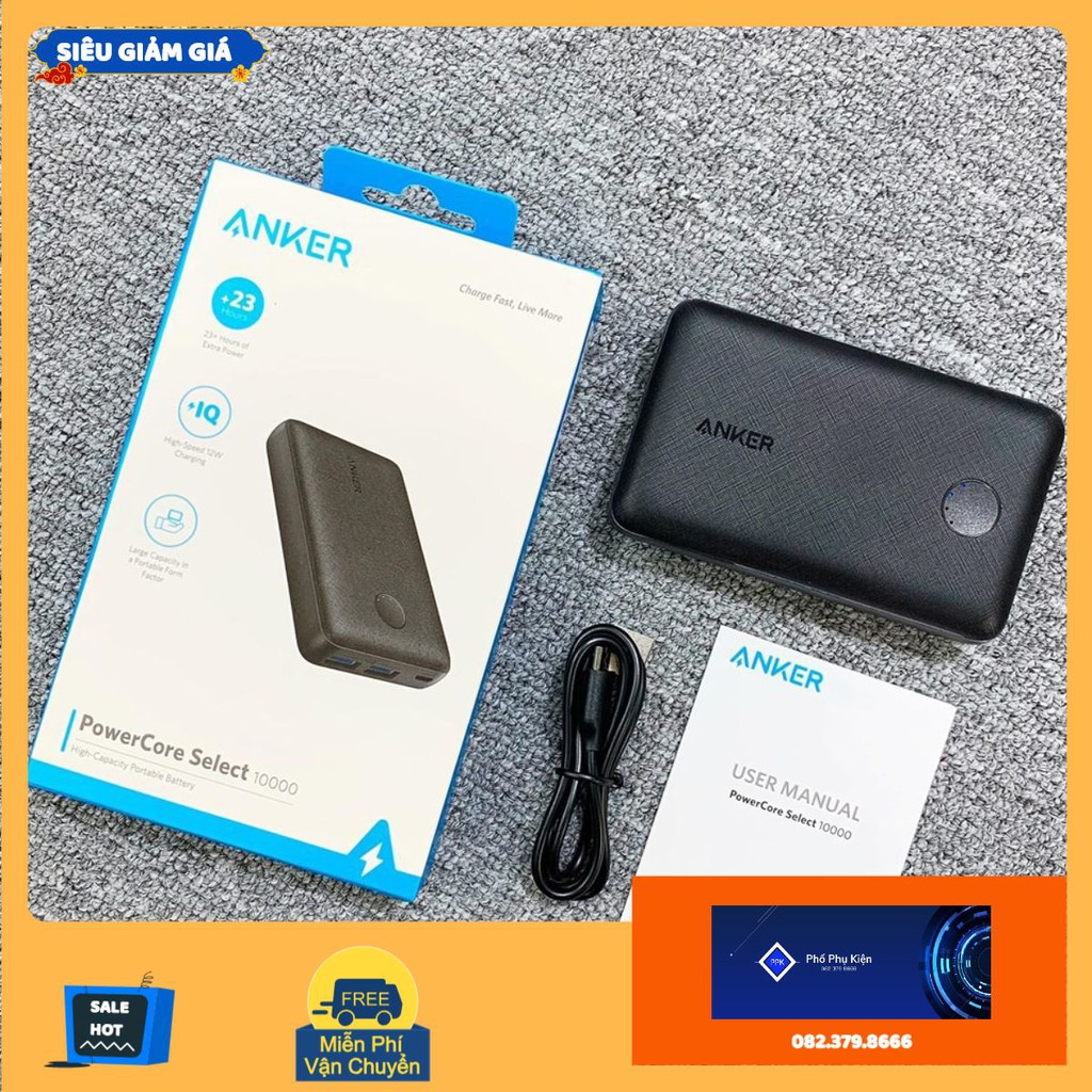 Điện Thoại & Phụ Kiện > Phụ kiện > Sạc dự phòng & Pin > Sạc dự phòng || [Bảo Hành 12 Tháng] Pin Dự Phòng Anker PowerCore Select 10000 A1223 - Hàng Chính HãngCòn hàng