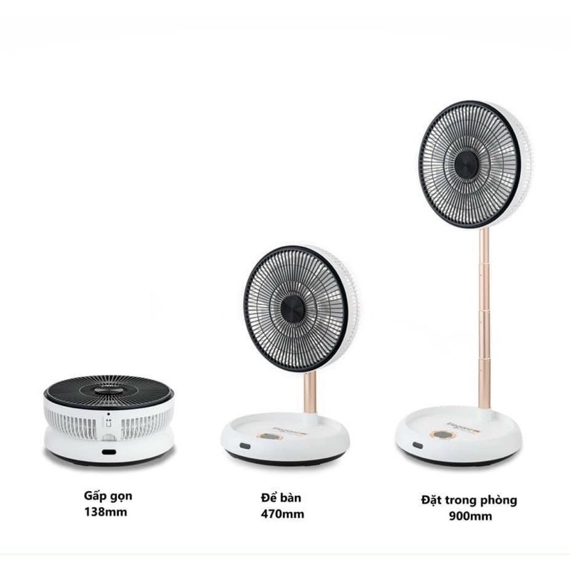 😋 Quạt có thể tăng giảm chiều cao linh hoạt và gấp gọn gàng khi không có nhu cầu sử dụng.