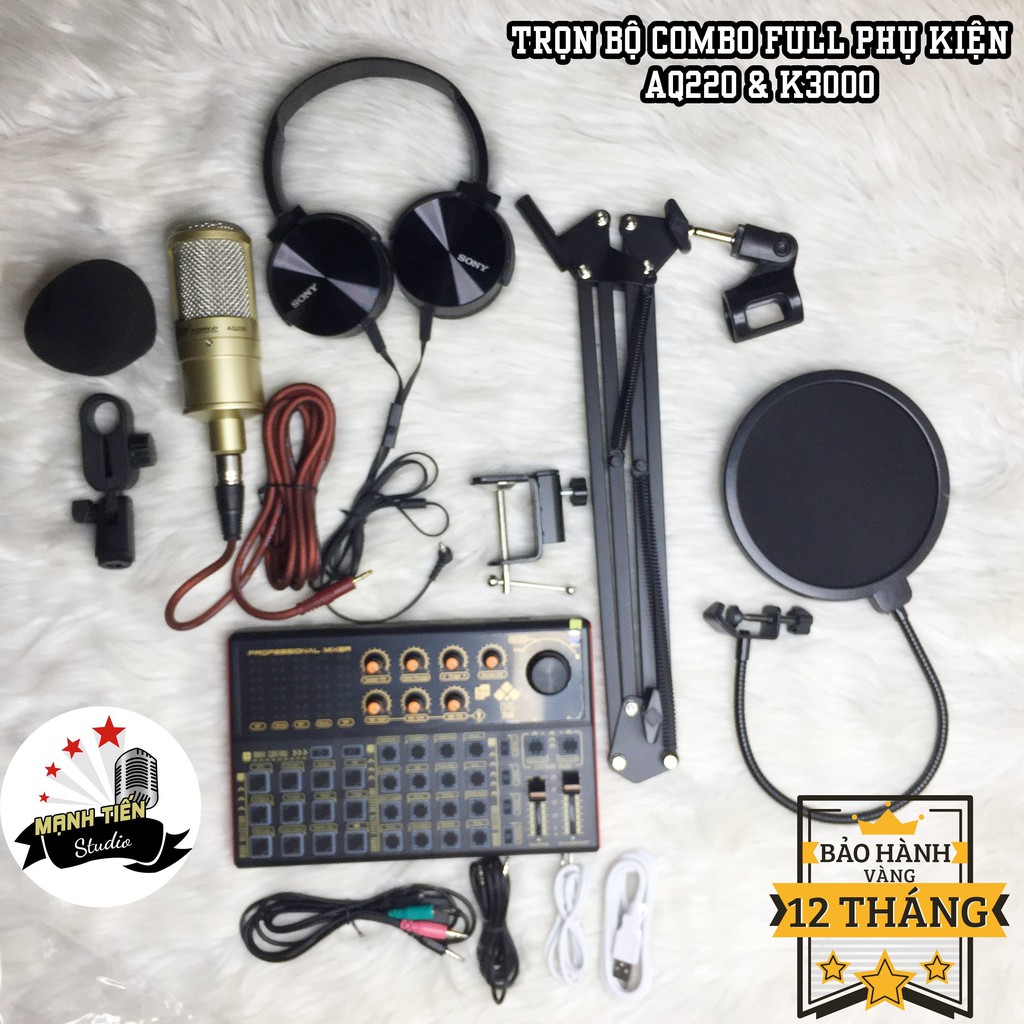 [bảo hành 12 tháng] trọn bộ combo micro AQ220 + sound card K3000 + full phụ kiện livestream karaoke thu âm cao cấp sang