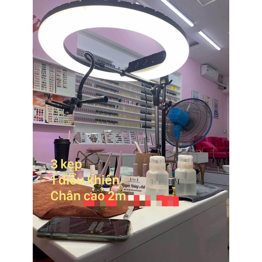 - Đối với KH livestream nhiều điện thoại thì có thể mua thêm kẹp điện thoại gắn vào chân đèn.