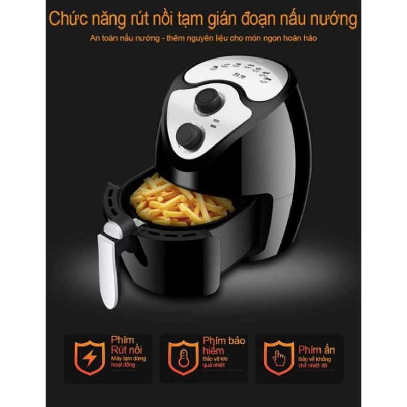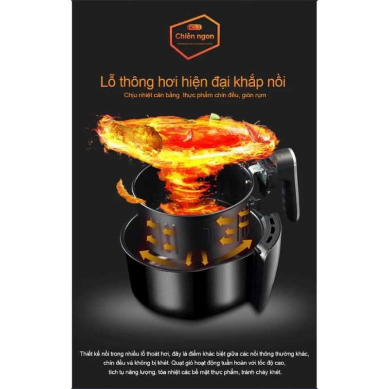 - Nồi chiên không dầu 1300W dung tích lớn giúp chiên rán đồ ăn một cách nhanh chóng, hiệu quả, lành mạnh. Nồi chiên với thiết kể mang kiểu dáng hiện đại, sang trọng, sử dụng chất liệu nhựa ABS an toàn và bền bỉ,