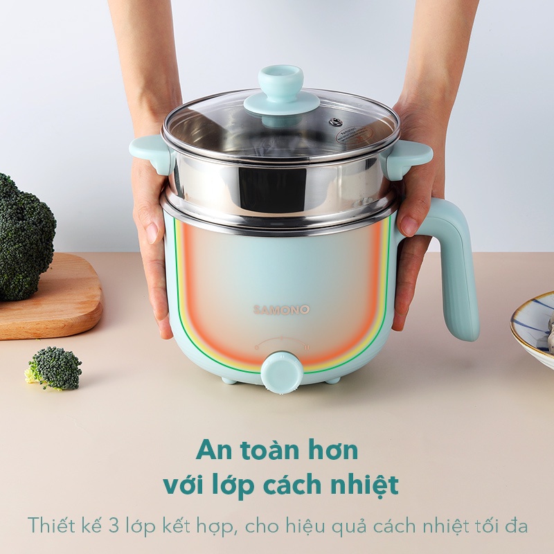 [BẢO HÀNH 12TH] Nồi điện đa năng SAMONO SW-DG01 dung tích 1.2L có xửng hấp nấu lẩu hấp rau nấu chè