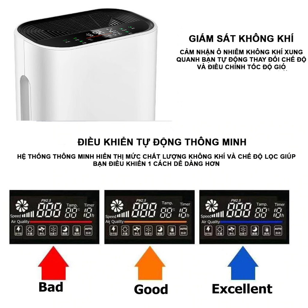 🍀 Khử mùi cực hiệu quả với cảm biến mùi siêu nhạy mùi Thuốc lá, mùi vật nuôi, mùi thức ăn, mùi ẩm mốc,…
