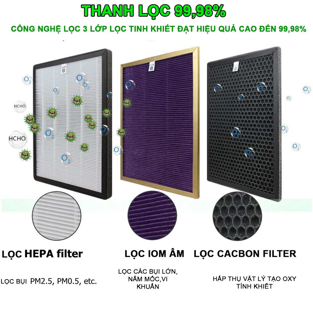 🍀 Diệt vi khuẩn, virus, nấm mốc lên tới 99,97%. Đảm bảo cho sức khỏe, giảm khả năng nhiễm bệnh và ít ốm vặt.