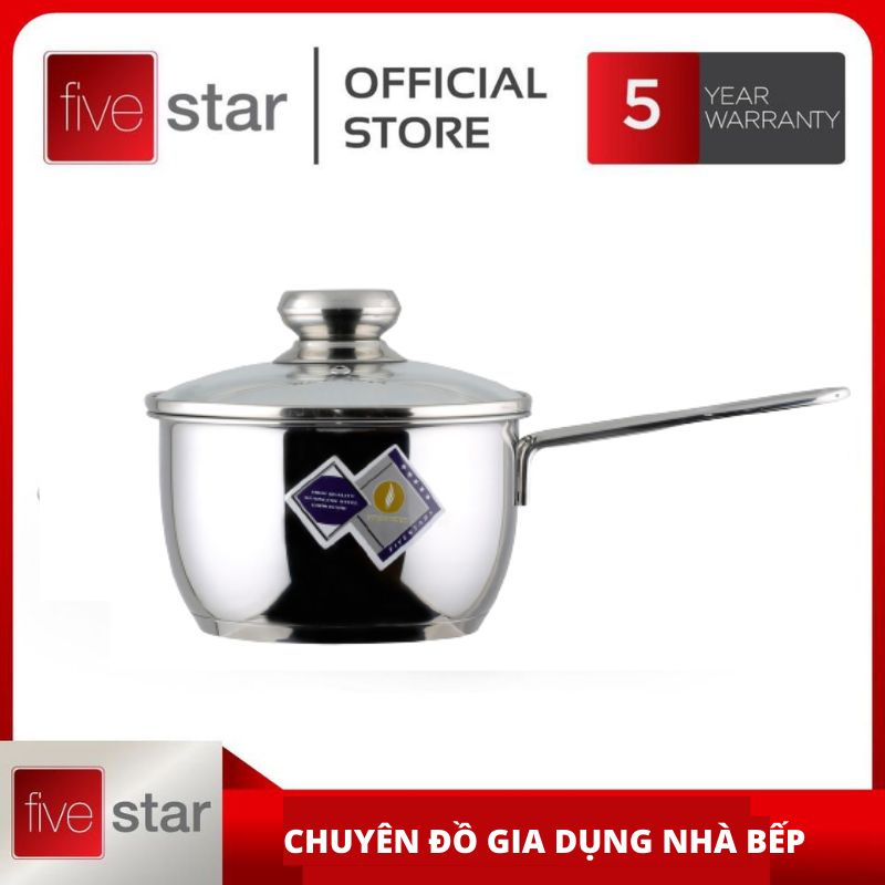 FiveStar là công ty chuyên cung cấp các nồi inox, bộ nồi inox, xửng hấp inox theo tiêu chuẩn của Châu Âu. Với phương châm hàng đầu là "Sự hài lòng của khách hàng - Là thành công của chúng tôi" FiveStar đã cho ra đời nhiều thiết bị nhà bếp có chất lượng cao được người tiêu dùng tin dùng, FiveStar Quánh Inox 430 có 3 đáy nắp kính 16cm là một trong những dòng sản phẩm đó.