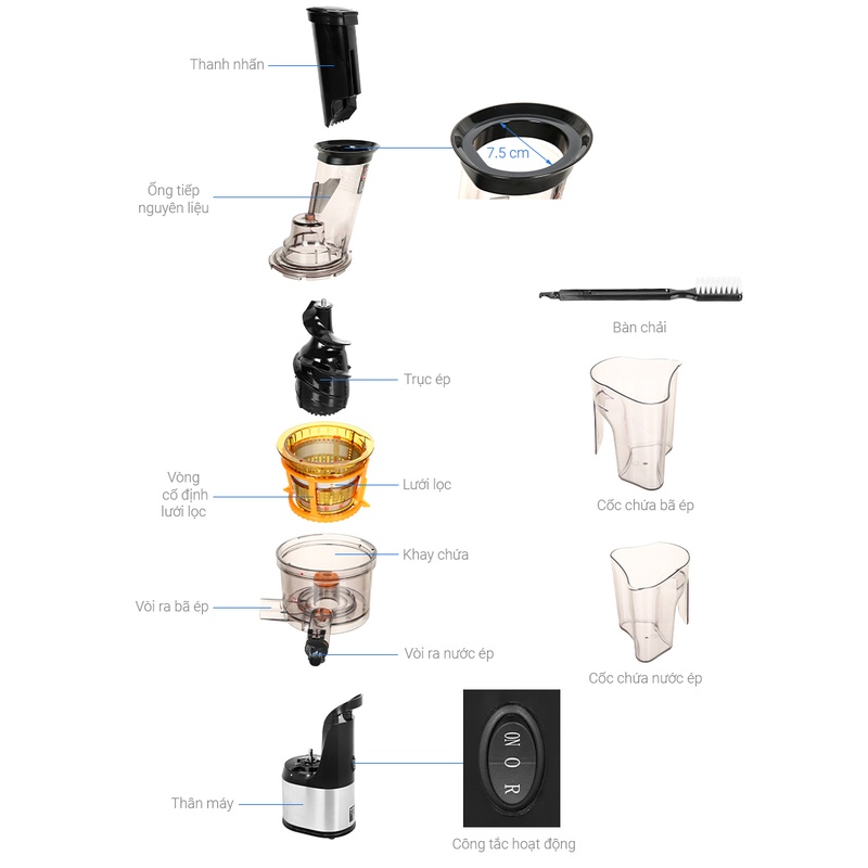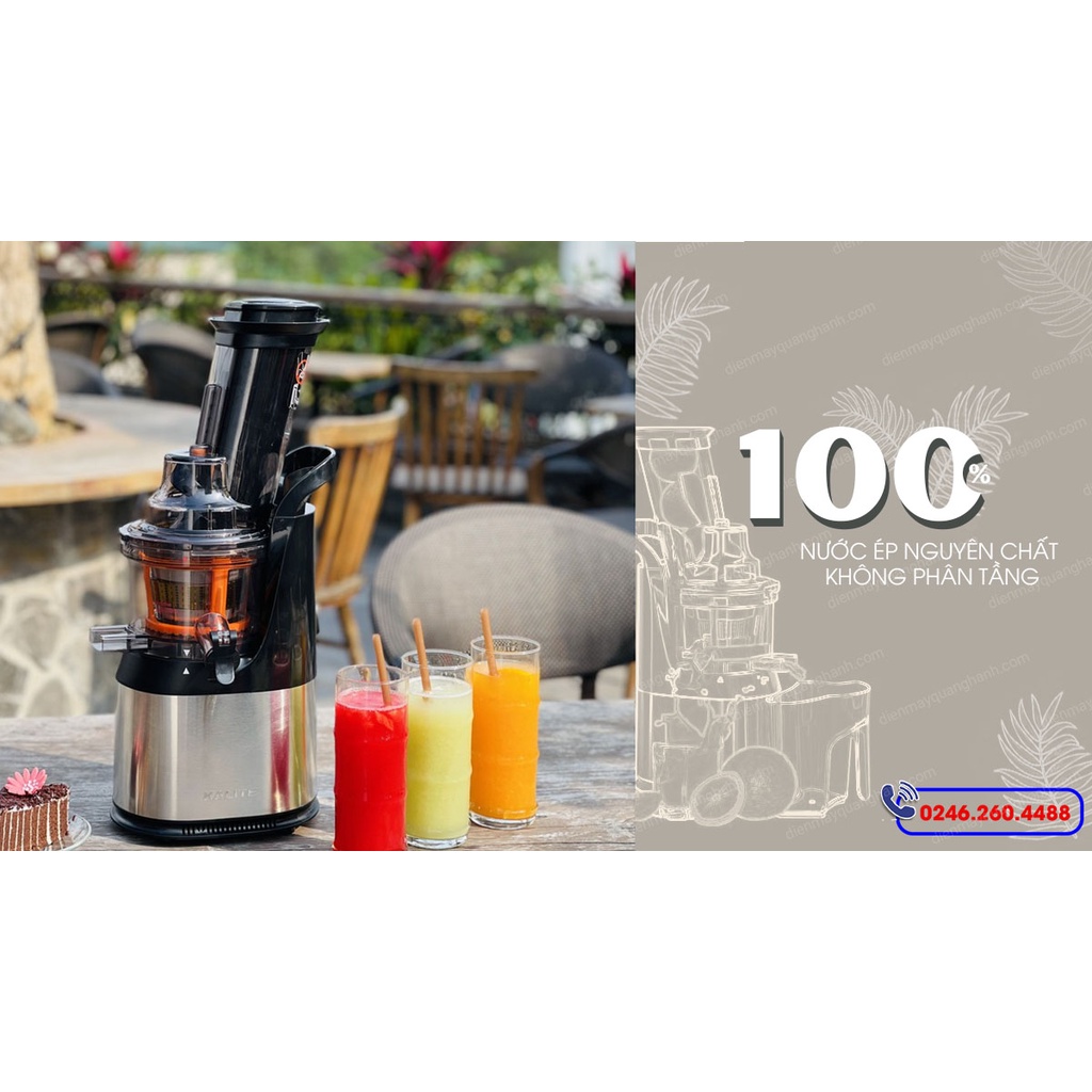 ✅ Ứng dụng công nghệ ép chậm, ít sản sinh ra nhiệt, không tạo lực ly tâm, giúp nước ép luôn tươi ngon, giữ được 98% chất dinh dưỡng